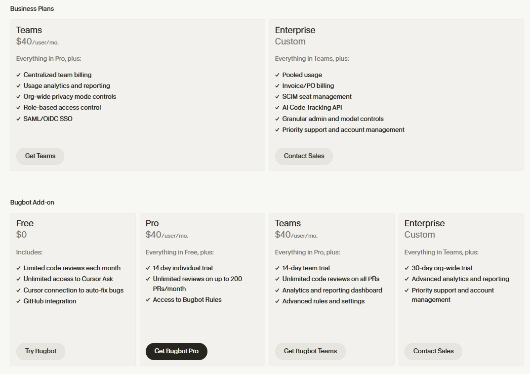 Cursor AI는 무료 플랜(Hobby)을 제공합니다.
